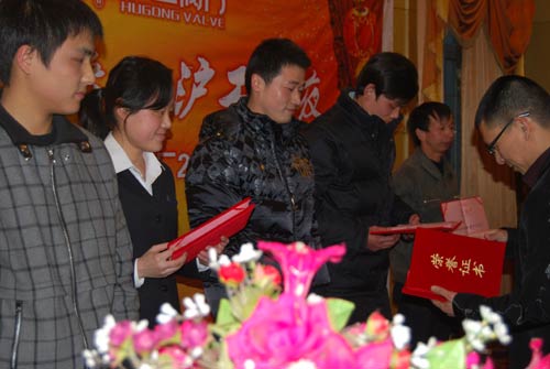 歌曲之后繼續(xù)抽獎環(huán)節(jié),上圖為柯主任在為員工抽獎并頒獎!